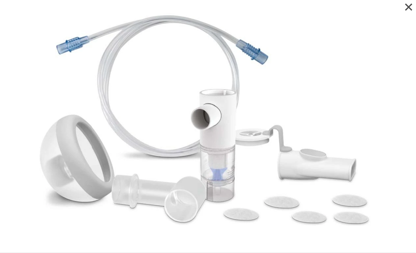 - set obsahuje: nádobku na liečivo (set rozprašovacej komory), masku pre deti, hadičku, náustok, filtre